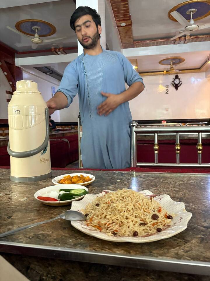 При заказе плова вам принесут свежие овощи, суп из бобовых, чай, конфетки, хлеб. Стоит это все в среднем 180 афгани (204 рубля). Причем вы не съедите и половину порции плова, настолько они огромные. Мы брали одну на двоих. В меню есть кебабы, молочные продукты, десерты и даже ашак – что-типа вареников. Вообще, в стране сбалансированная и питательная кухня. Я не встречал худых или толстых афганцев. Все они были слаженного телосложения, несмотря на расслабленный образ жизни.