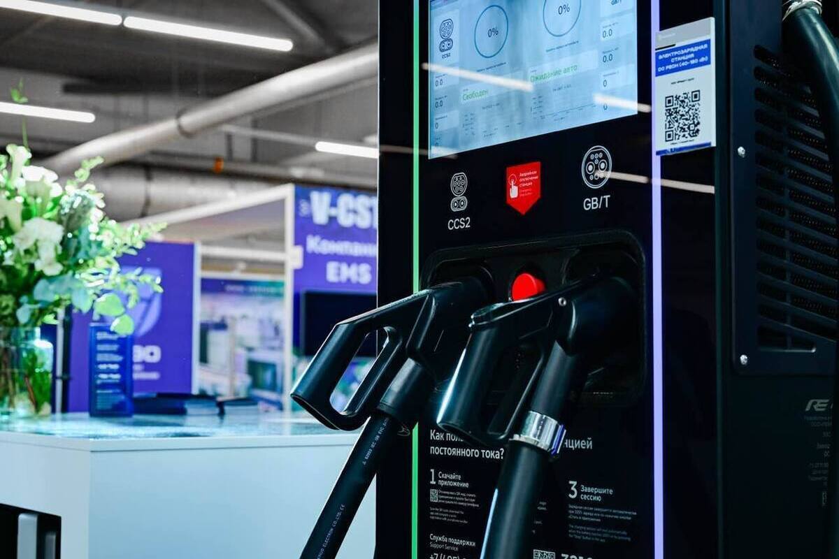 А «Реватт рус» представила зарядную станцию для электромобилей с двумя кабелями для одновременной зарядки.