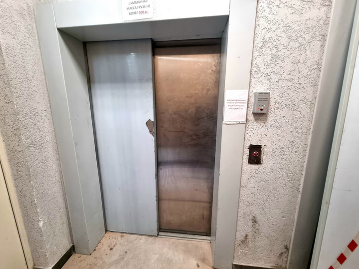 Лифт, правда, один, грузовой, в день моего приезда работал. А пассажирский почему-то бездействовал, был оклеен лентами. Как рассказали жильцы, лифт починили пять дней назад. До этого он три месяца практически не работал! Только изредка. И то люди в нем постоянно застревали. При этом УК обвиняет в сбоях работы подъемного механизма самих жильцов — мол, они его перегружают.