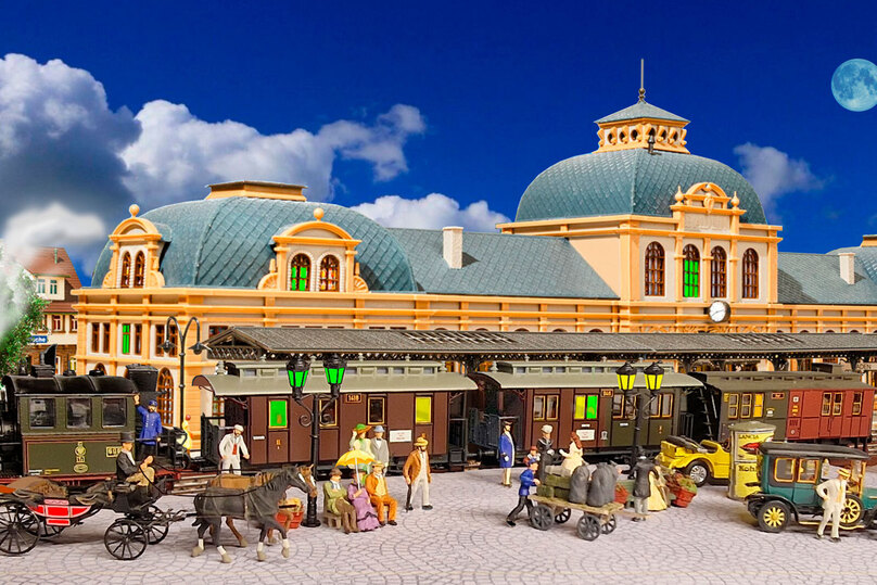 Ну и как же без вокзала. Перед вами точная копия возведенной 130 лет назад станции Baden-Baden. Загляните внутрь: очередь в кассу за билетами, зал ожидания полон. И прислушайтесь: на перронах разноголосье… Часы на главной башне отбивают полдень, диктор по громкой трансляции сообщает: поезд на Франкфурт отправится с третьего пути. Гулкое эхо раскатывается по окрестностям.