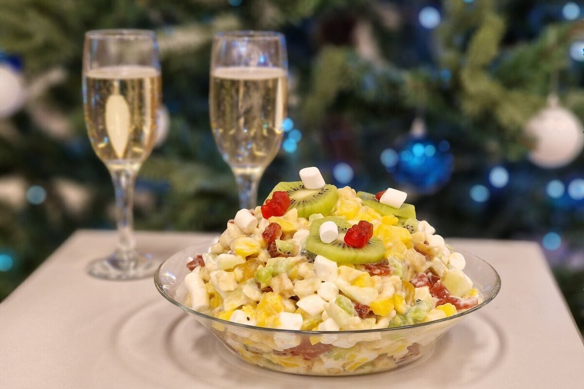 2-3 салата: один легкий (например, с овощами и зеленью), один сытный (на основе мяса/картофеля) и один оригинальный.