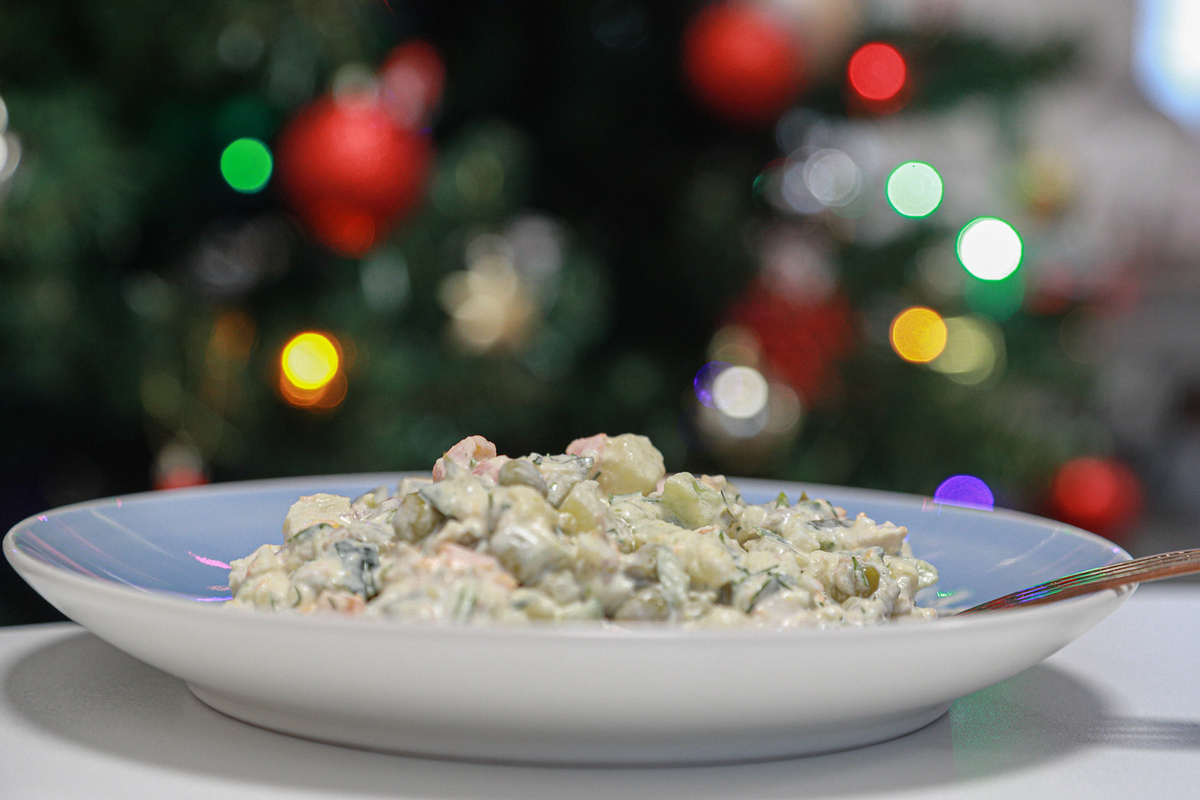 К такому салату, правда, просится пиво — не самый традиционный новогодний напиток. Но, если задуматься, и в оливье нет почти ничего, что сомелье порекомендовали бы запивать шампанским (тем более любимым полусладким), так что невелика разница.