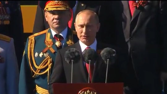 Президент Владимир Путин выступил на Военном параде в честь 69-й годовщины Победы в Великой Отечественной войне. Он поблагодарил всех ветеранов за отвагу и мужество, проявленные в военные годы. "Железная воля советского народа, его бесстрашие и стойкость спасли Европу от рабства", - сказал Владимир Владимирович. Оригинал видео на сайте kremlin.ru, полную версию смотрите здесь.