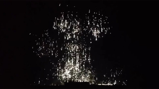 Сегодня ночью Донецк забросали фосфорными бомбами, которые разрывались прямо над жилыми домами. Оригинал видео на сайте youtube.com, опубликовано пользователем Pravda TV.
