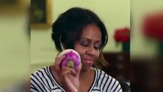 Первая леди США в ответ на вопрос актера по имени Иман Кроссон «Сколько калорий вы теряете, когда копаете?» станцевала с фиолетовой репой. Оригинал видео на сайте youtube.com, опубликовано пользователем Violet Carpenter.