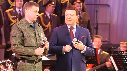 В Донецке вместе с премьером ДНР Александром Захарченко Иосиф Кобзон исполнил песню "Я люблю тебя, жизнь". Видео опубликовано на сайте youtube.com пользователем Dialog.ua