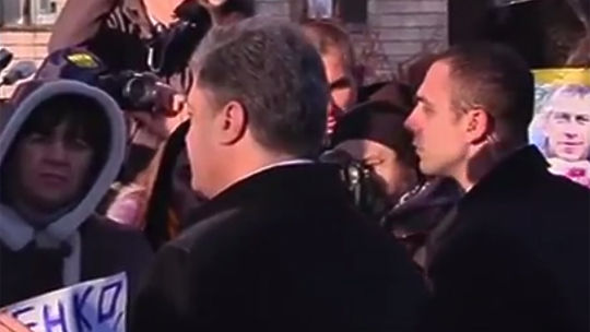 Так президента Украины встретили в центре Киева в годовщину начала "Евромайдана". Видео опубликовано на сайте youtube.com пользователем 112 Украина