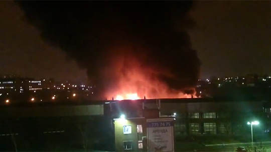 Возгорание произошло в здании завода технической сантехники на Котляковской улице. Видео опубликовано на сайте youtube.com пользователем bi0sbi0s