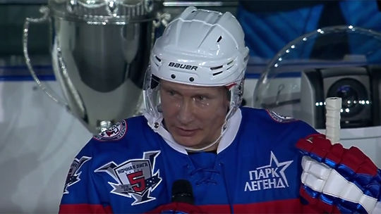 Владимир Путин в Большом ледовом дворце в Сочи открылпятый сезон Ночной хоккейной лиги и принял участие в игре. Видео опубликовано на сайте youtube.com пользователем Власть.