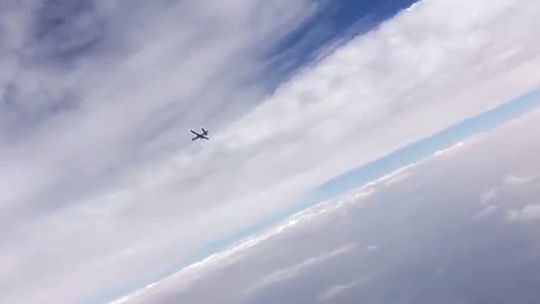Министерство обороны России обнародовало таинственное видео, снятое из кабины истребителя в небе над Сирией. Рядом в воздухе находится беспилотный летательный аппарат, а подпись констатирует, что интенсивность присутствия дронов "возросла". Напомним, что недавно ВВС Турции сбили на границе с Сирией беспилотник, чья принадлежность так и не была установлена.