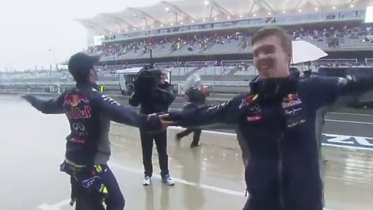 Российский пилот Даниил Квят вместе со своим напарником станцевали вальс перед началом гонки. Таким образом они решили скрасить долгое ожидание начала этапа "Гран-При США", постоянно откладывавшегося из-за приближавшегося урагана "Патрисия".