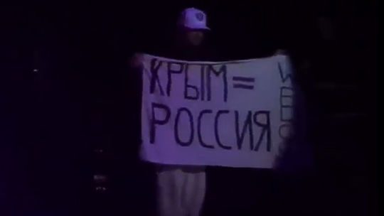Лидер группы Limp Bizkit Фред Дёрст во время концерта в Воронеже вышел на сцену в футболке с надписью Russia и принял из рук фанатов плакат с надписью "Крым=Россия". Этот момент был запечатлен на видео.