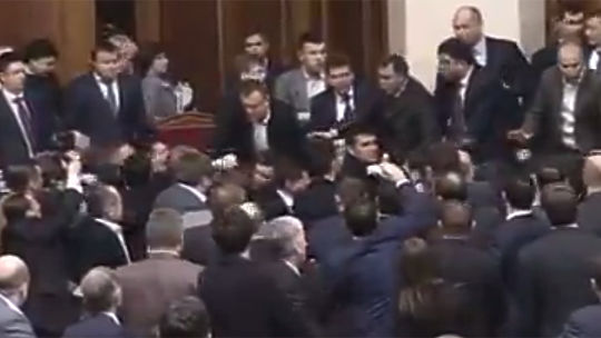 Во время выступления премьер-министра Арсения Яценюка на заседании Верховной Рады началась драка между депутатами фракции "Народный фронт" и партии "Блок Петра Порошенко".