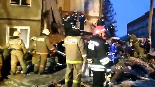 Сотрудники МЧС разбирают завалы на месте взрыва бытового газа в жилом доме в Ярославле. Взрыв уничтожил полностью 5 квартир и еще 20 - частично. Под завалами находятся люди. Видео опубликовано на сайте youtube.com пользователем Slava Slavynin.