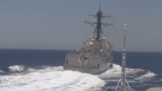 В Сети опубликованы кадры, снятые с борта российского боевого корабля "Ярослав Мудрый" в Средиземном море. На видео запечатлено, как американский эсминец "Грейвли" фактически "подрезает" российский корабль. Американцы успели проскочить прямо под носом у "Ярослава Мудрого", когда расстояние между ними сократилось до нескольких десятков метров. Как сообщалось ранее, инцидент произошел 17 июня. В Минобороны России считают, что этот маневр "Грейвли" представлял реальную опасность для российского корабля.