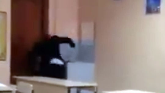 В кадре — девятиклассники в ожидании учителя. Одна из учениц взяла бутылку с водой и плеснула в одноклассника. Парень, не мешкая ни секунды, набросился на девушку с кулаками и стал наносить удары. Видео опубликовано на сайте facebook.com пользователем Станислав Казанчиков.