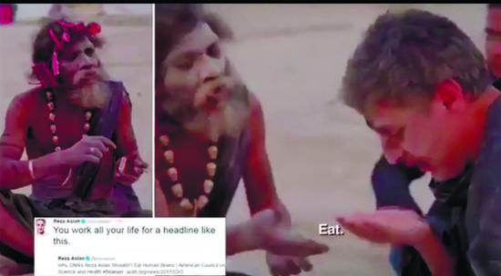 Телеведущий компании CNN Реза Аслан в ходе съемки очередной серии своей авторской программы "Верующий" попробовал на вкус кусочек человеческого мозга. Угощение ведущему предложил один из героев его передачи - представитель индуистской секты, где практикуется каннибализм. Аслан отказываться не стал и решил попробовать, за что позже подвергся резкой критике со стороны общественности и представителей различных религиозных конфессий.