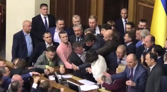 Обсуждение законопроекта о реинтеграции Донбасса в Верховной Раде переросло в драку. Во время обсуждения документа, который может заменить Минские соглашения, ряд депутатов попытались заблокировать президиум парламента, возникла потасовка. При этом секретарь СНБО Александр Турчинов обвинил зачинщиков в том, что они не хотят признавать Россию "агрессором".