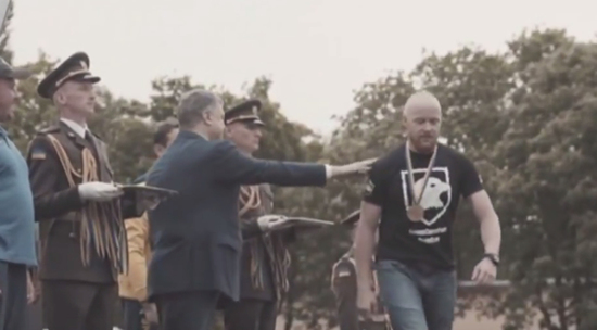 Во время вручения медалей ветеранам АТО, Президент Порошенко попал в щекотливую ситуацию: один из ветеранов батальона "Азов" отказался жать ему руку. Президент, видимо по наивности, решил что боец не заметил его протянутой руки, но похлопав ветерана по плечу и получив неодобрительный кивок головы, Порошенко понял, что ручкаться с ним мужчина не желает.