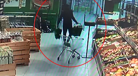 Камеры наблюдения запечатлели футбольного болельщика, который нагрузил две корзинки выпивки и покинул магазин, не заплатив.