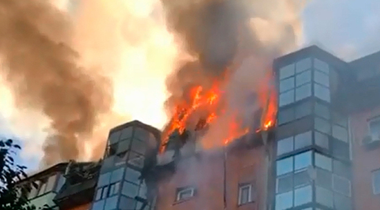 В подмосковном Королеве утром произошел сильный пожар на последних этажах многоэтажного жилого дома в центре города. Помимо наземной техники, МЧС привлекло для тушения несколько пожарных вертолетов. По последним данным, огонь охватил весь мансардный этаж жилого дома, где располагаются двухуровневые квартиры. Видео пожара публикует на YouTube пользователь Никита Трусов.