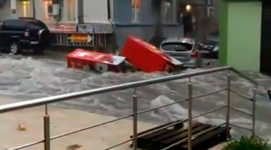 Из-за сильнейшего ливня, идущего на протяжении всего дня, в Туапсе затоплены низменные районы города, вышедшие из берегов городские речки подтопили три пригородные станции железной дороги, железнодорожное сообщение с городом временно приостановлено. Катаклизм смывает с дорог машины с людьми, по улицам города в бурных потоках воды плывут стулья и холодильники и автомашины. Один из видеороликов опубликован в Instagram пользователем svetlana1787537.