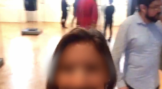 Момент появления в Государственном Историческом музее "постороннего" экспоната попал на видео. Школьницы делали серию селфи и случайно засняли, как неизвестные люди вешают фотографию в раме.