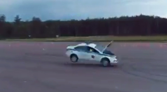 Машина военных инспекторов перевернулась во время выполнения «полицейского разворота» на 180 градусов при движении задним ходом. Трюк проводили на специальной тренировочной площадке на автомобиле Lada Vesta, но во время его исполнения что-то пошло не так. Водитель визуально не пострадал, однако вышел из салона довольно помятым. По всей видимости, инцидент произошел во время всеармейского конкурса «Дорожный патруль», который проходил с 12 по 15 июня на подмосковном полигоне «Ногинский».