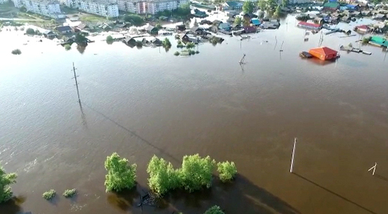 Уровень воды в вышедшей из берегов сибирской реке Ие начал уменьшаться, в затопленном Тулуне он опустился уже ниже 11 метров. Представители экстренных служб сообщают, что до достижения уровня ниже критического потребуется не меньше двух дней. Катастрофическое наводнение началось в нескольких районах Иркутской области из-за длительных проливных дождей, вышедшая из берегов река Ия прорвала дамбу и хлынула в лежащий ниже по течению город и деревни. Один из жителей Тулуна заснял происходящий в городе потоп с помощью дрона, видеоролики выложены на YouTube пользователем PacMyc13.