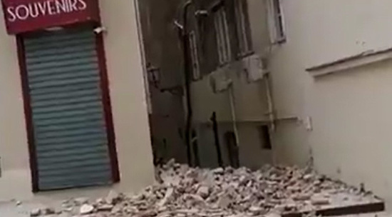 В хорватском Загребе произошло сильное землетрясение, эпицентр которого был в 7 километрах от города на глубине 10 км. Несколько улиц оказались перекрыты завалами кирпичей, пострадали также машины, припаркованные у обрушившихся зданий. Также от землетрясения рухнул один из шпилей Загребского собора. Видео опубликовано в Twitter пользователем TrueMe International.