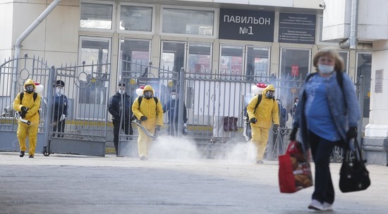 В Москве МЧС начал очередную полномасштабную дезинфекцию всех железнодорожных вокзалов. Первыми в пятницу были обработаны Курский и Рижский вокзалы. Обрабатываются абсолютно все помещения, платформы и фасады зданий. В среднем на территорию каждого вокзала у сотрудников МЧС уходит около трёх часов. Для обработки используются растворы на основе хлора. И хотя для людей они вполне безопасны, посетителей просят покинуть здание вокзала. Для обработки больших площадей сотрудники МЧС используют ранцевые разбрызгиватели. Весит такое снаряжение около 30 кг.
