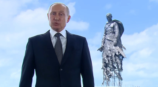 Видеообращение президент записал во Ржеве, на фоне памятника Советскому солдату, на открытие которого прилетел президент Белоруссии Александр Лукашенко.