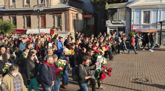 По центру Нижнего Новгорода прошло траурное шествие памяти Ирины Славиной, журналистки, главного редактора независимого сетевого издания KozaPress, покончившей с собой напротив здания МВД после унизительного обыска.