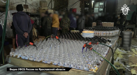 В Ярославской области сотрудники ФСБ и Росгвардии обнаружили нелегальный завод по производству поддельного алкоголя. 33-летний уроженец одной из республик Северного Кавказа наладил свое криминальное производство на пяти линиях по розливу спиртного, оперативниками во время операции по задержанию изъято более полумиллиона бутылок готовой "продукции". Также в цехах задержаны 22 нелегальных мигранта из Средней Азии, работавших на заводе. Оперативное видео на своем YouTube-канале опубликовал СК РФ.