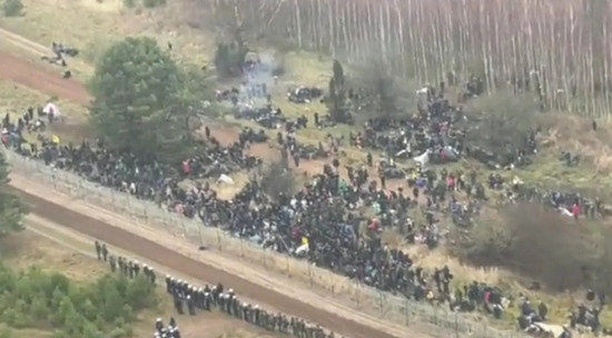 Польское министерство обороны опубликовало кадры колонны нелегальных мигрантов, снятые с воздуха. Люди с вещами и маленькими детьми сворачивают с шоссе и уходят в лес вдоль ограждения границы Польши и Белоруссии. В связи с этим войска территориальной обороны Польши перешли в режим 6-часовой готовности.