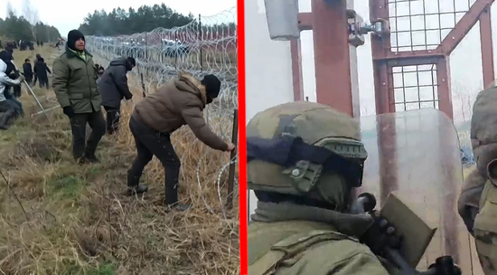 В сети появились видео с границы Белоруссии и Польши, где сегодня - самый напряженный день противостояния с мигрантами. Беженцы, подобравшиеся к границе со стороны Белоруссии, массово бросились на колючую проволоку, валя на землю и перерезая ограждение огромными кусачками. В польских пограничников полетели разные предметы - Минобороны Польше утверждают, что мигранты вооружились светошумовыми гранатами, причем раздали их якобы власти Белоруссии.