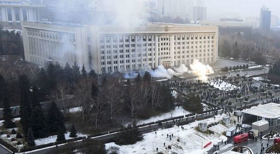 Жители Алма-Аты опубликовали в соцсетях видео зачистки силовиками площади Республики после масштабных беспорядков в Казахстане. На кадрах, снятых с балкона многоэтажки, слышны канонада и звуки взрывов, площадь затянута дымом. Съемка ведется "из тыла" силовиков - они сосредоточены в сквере, их поддерживает бронетехника.