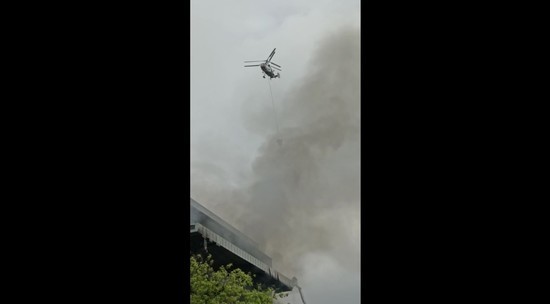 В Москве продолжается тушение сильного пожара в "Гранд Сетунь плазе". Возгорание получило максимальный ранг сложности. Для локализации был привлечен вертолет, 16 единиц наземной техники и 86 пожарных. На место происшествия прибыл глава МЧС Александр Куренков.