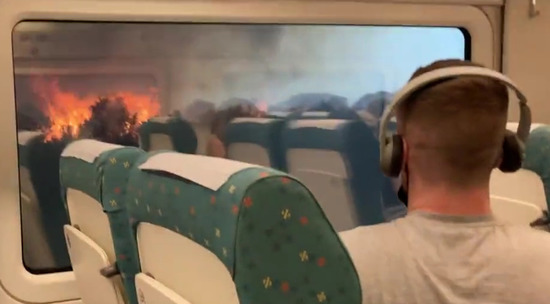 Аномальная жара мешает тушению лесных пожаров в Испании. Огнем охвачено уже более 20.000 гектаров леса, экстренные службы сообщили об одном погибшем. Между Мадридом и Галисией пришлось остановить железнодорожное сообщение из-за подошедшего вплотную к путям огня. Пассажиры поезда сняли на видео полыхающий лес по обеим сторонам дороги. Страны Европы одна за другой объявляют "оранжевый" уровень погодной опасности, вплоть до конца следующей недели температура воздуха будет колебаться около отметки +40.