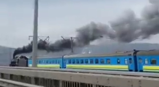 В социальных сетях появилось видео, на котором паровоз с гербом Украины везет пассажирский состав по мосту. Пользователи утверждают, что кадры были сняты на территории Украины - в связи с отключением электроэнергии местные железнодорожные службы вынуждены обращаться к технологиям начала прошлого века.
