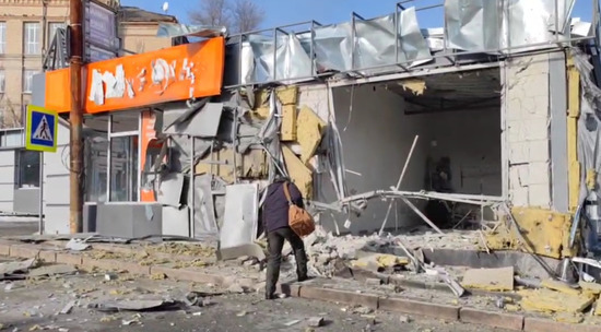В воскресенье центр Донецка подвергся массированному обстрелу. ВСУ выпустили по городу более 40 ракет, в том числе и "натовского" калибра 155 мм. Снаряды попали в городской Крытый рынок, здание библиотеки, общежитие Донецкого университета, жилые дома и детский садик. Видео последствий обстрела опубликовано в Telegram-канале "Типичный Донецк".
