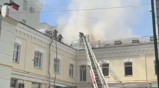 В Столешниковом переулке начался пожар в двухэтажном доме 1917 года постройки. Горит крыша и мансардный этаж нежилого здания на площади около 100 кв.м. На месте ЧП работают экстренные службы. Видео опубликовано Прокуратурой Москвы.