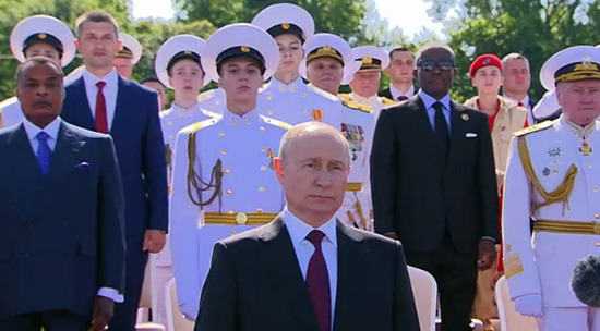 Президент России Владимир Путин выступил с речью на военно-морском параде в Петербурге, который проводился в честь Дня Военно-морского флота РФ. Глава государства заявил, что на протяжении веков российский флот «был и остаётся несокрушимым стражем рубежей Отечества, его гордостью и славой».