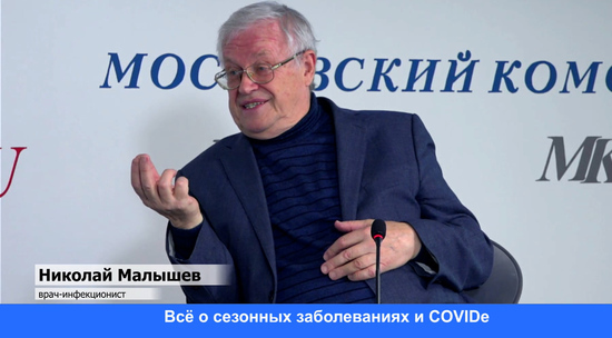В пресс-центре "МК" прошла конференция с врачом-инфекционистом Николаем Малышевым. Эксперт рассказал, что COVID сегодня стал менее опасным для человека, его симптомы часто схожи с обычным ОРВИ, а время течения болезни снизилось. Однако врач напомнил россиянам, что пренебрегать личными средствами защиты, масками, не стоит. Осенью особенно важно надевать их в общественных местах с большим количеством людей.
