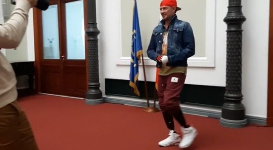 Встретили спортсмена аплодисментами. Костомаров поделился своим опытом восстановления. Фигурист показал, что он уже может вполне самостоятельно передвигаться.