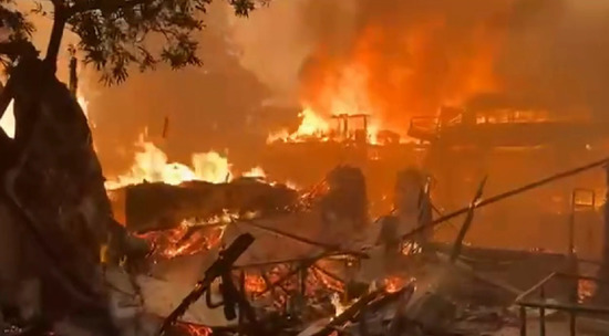 На видео — ужасающие кадры, как огонь поглощает жилые кварталы.