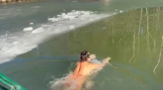 Известный дизайнер Алиса Толкачева международный женский день отметила в пруду. С детства модельера вдохновлял ее дедушка, который обливался ледяной водой. А несколько лет назад Алиса попробовала и теперь стала настоящим "моржом". В первое время модельер окуналась в прорубь лишь до заморозков, но позже стала плавать в любую зимнюю погоду. Вчера была прекрасная погода, но в пруду еще виднелся лёд. Алиса решила в женский праздник порадовать себя, ведь окунание для нее является не только поддержанием своего тела в тонусе, но и отдушиной.