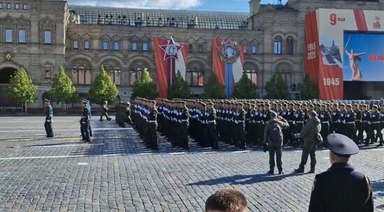 Так происходило построение парадных расчетов на параде Победы в Москве — 9 мая 2025. Каждая "коробка" заходила на площадь со своей песней.