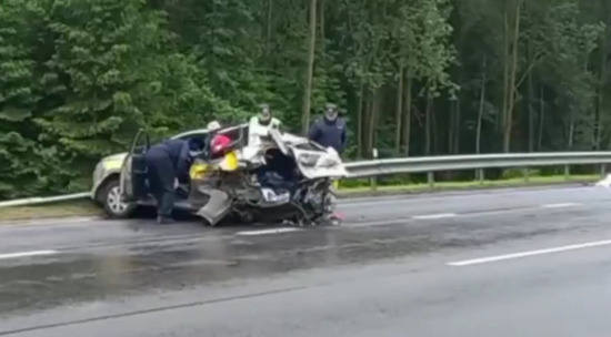 Смертельное ДТП произошло на трассе, ведущей в аэропорт Минска. Пьяный 26-летний мужчина за рулем Мерседеса врезался в такси, в котором ехала семья из России. От удара машину отбросило на дорожное ограждение, все пассажиры (75-летняя женщина, ее 43-летняя дочь и две девочки 13 и 7 лет) такси погибли, водитель госпитализирован с травмами. Виновник аварии и его пассажир не пострадали. Видео с места ДТП опубликовал СК Белоруссии.