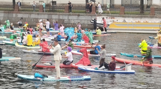Колонна из 10 тысяч участников двигались по Мойке и Фонтанке. В регате участвовали питерцы, москвичи, а также все желающие жители России при наличии интересного костюма. Наряды были оригинальные, смелые, смешные, и даже несуразные. Это был настоящий карнавал на воде. Моросящий дождик поклонников водных развлечений не смутил.